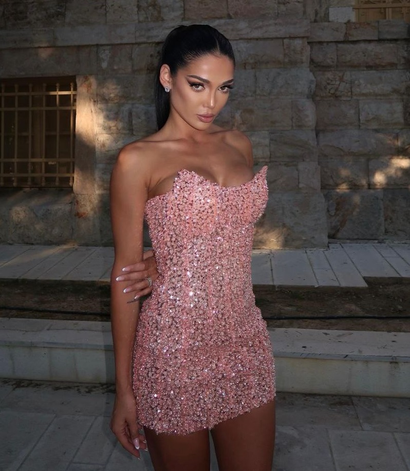 Ky fustan mini është zgjedhja ideale për një pamje magjepsëse dhe festive. Me një siluetë të ngushtë bodycon pa rripa (strapless) të punuar si korse, ai përqafon trupin për të theksuar format. Fustani është i mbuluar plotësisht me shkëlqim dhe gurë në një nuancë të lehtë dhe të gjallë rozë (pink), duke e bërë atë të shkëlqejë nën drita. Ky dizajn i guximshëm dhe ultra-femëror garanton një paraqitje tërheqëse në çdo event të natës.
